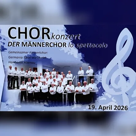 Der Männerchor „Lo Spettacolo“ unter der Leitung des renommierten Konzertdirigenten Thomas Gabriel präsentiert ein abwechslungsreiches Chorprogramm im Rahmen des Hessisch-Bayerischen Chorprojekts. Die beiden Chöre der Sängervereinigung Germania gegr. 1895 e.V. und die Harmonia Alzenau bringen Klassiker von Mendelssohn-Bartholdy, Mozart, Verdi, Malatesta, Schubert, Lehár, Strauss, De Marzi sowie schwungvolle Songs der Comedian Harmonists zu Gehör.